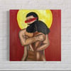 The concept behind this piece stemmed from what black history means and looks like to me. Black history is forgiveness, compassion, love and gentleness. I incorporated two darker toned people because unfortunately darker skinned people aren’t allowed to be soft, gentle or have feelings of distress. I highlighted that it’s okay to be black and need help. It’s okay to NOT be a “strong black woman” or a “strong black man”. Darker shade of red was incorporated to represent passion. The yellow moonlight represents light in the tiles of darkness or sadness. It’s a reminder that things do get better eventually. Black people have to continue to have blind love, blind compassion and blind forgiveness for one another. Once we all come together to support and uplift each other we will be unstoppable!